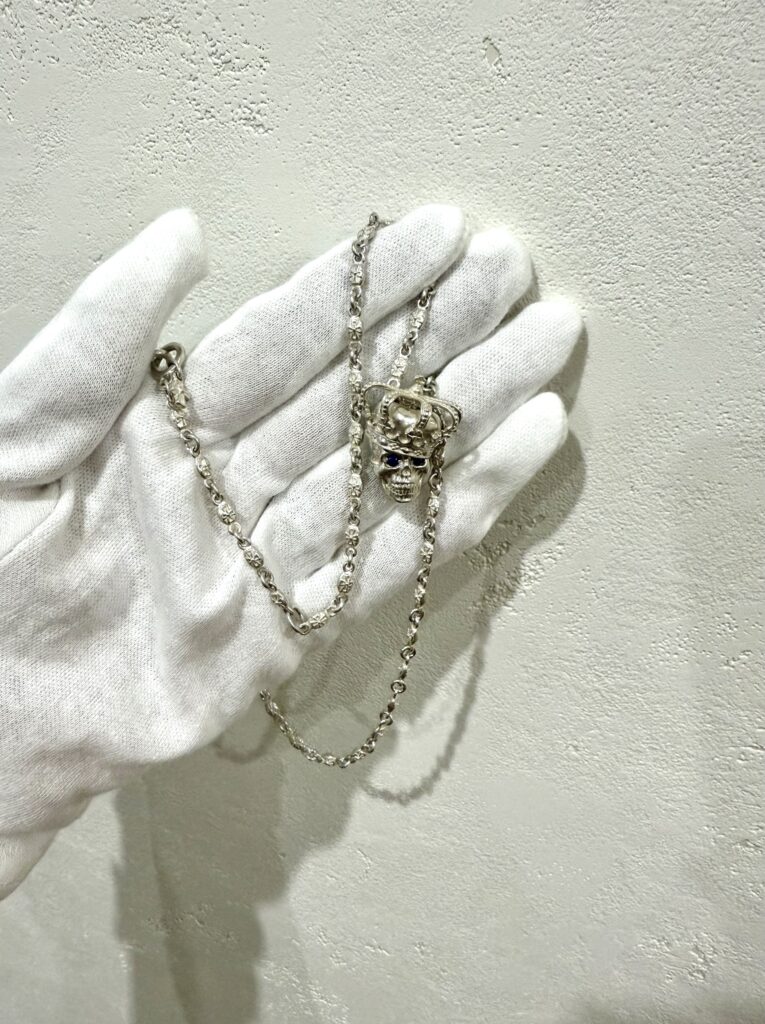 お持ちいただいたのは、ジャスティンデイビスのネックレス、ハイドロゲンのバッグ、レイバンのサングラスなど。査定を行い、それぞれにお値段をご提示したところ、「ジャスティンデイビスだけ売ります」とのご回答をいただき、無事お買い取りの運びとなりました。
