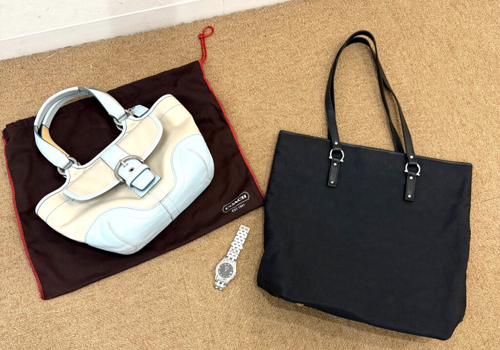 何度かご利用いただいているお客様から、コーチのバッグ・フェラガモのバッグ・グッチの腕時計をお買い取りさせていただきました。ご愛用品でしたが新しいお気に入りを購入されたそうで、自宅保管品となる前にお持ちいただきました。