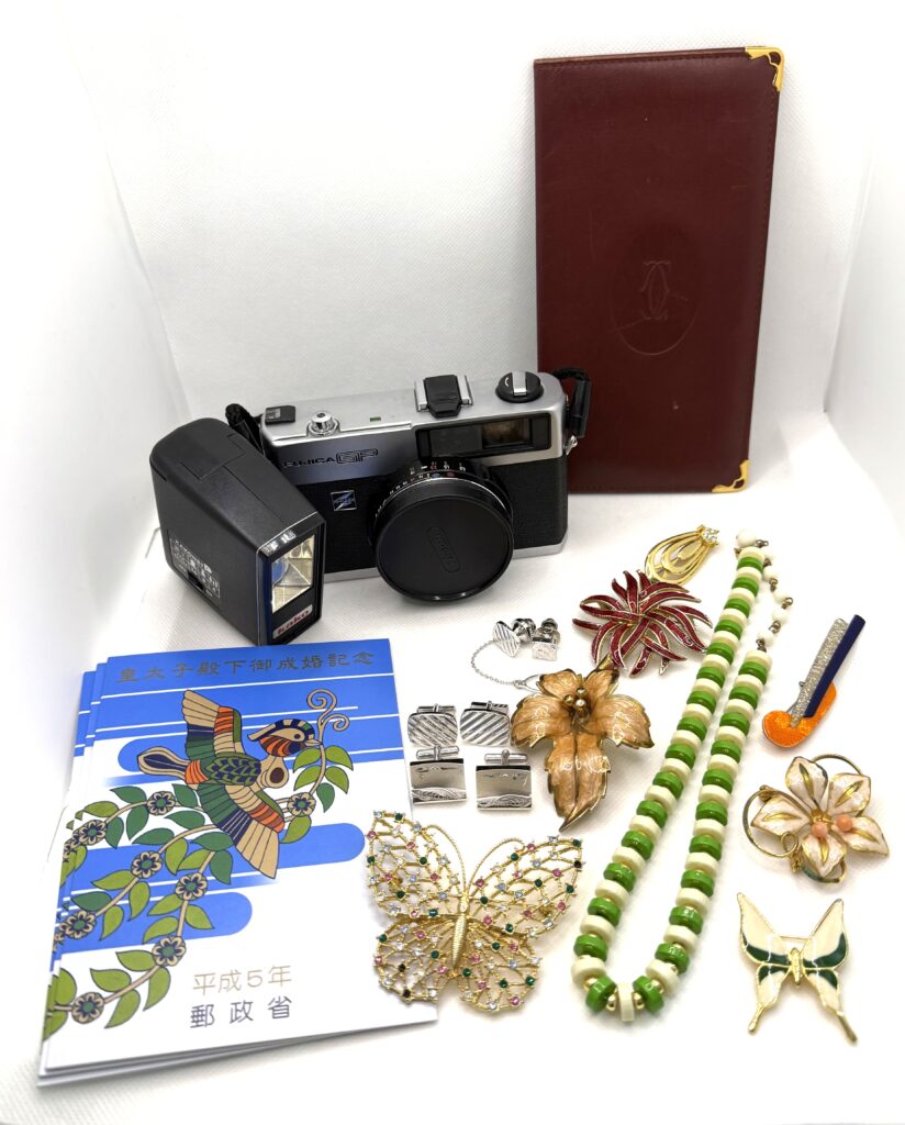 初めてご来店いただいたお客様から、カメラ・レトロアクセサリー・ブランド札入れなどをおまとめでお買い取りさせていただきました。長年愛用されていた物、長く放置していて眠らせていた物など様々でしたが、どちらのお品物も比較的綺麗な状態を保たれていました。