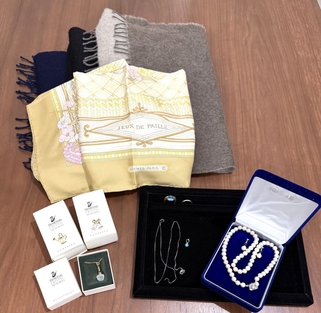 二度目のご来店をされたお客様から、K18やプラチナコンビのリング、エルメスのスカーフやマフラー、スワロフスキーの小物など沢山のお品物をお買い取りさせていただきました。前回も遺品整理品などの貴金属やバッグなど数点をお買い取りさせていただきましたので、お片付は完了されましたか?とお伺いしましたが、まだまだ沢山お品物があると仰ってました。