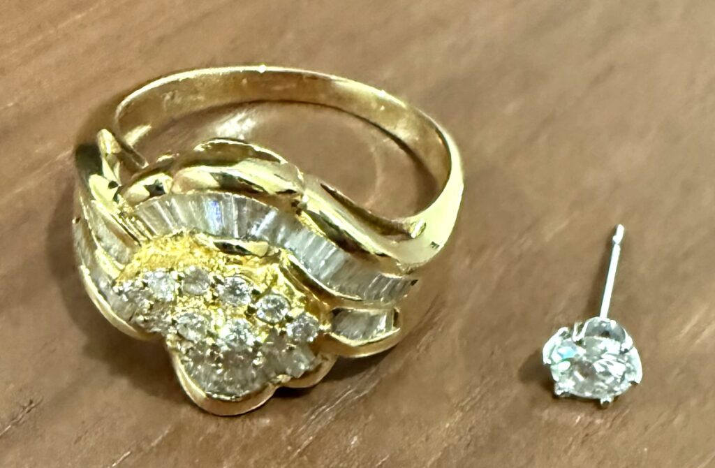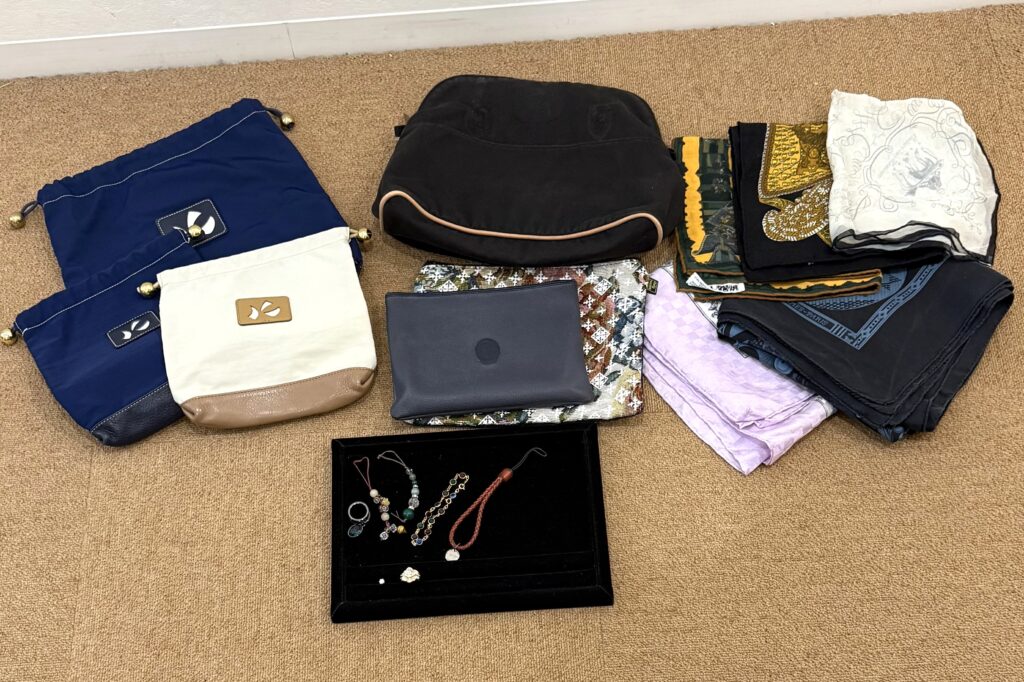何度かご利用いただいているお客様から、K18ダイヤモンドリングとプラチナダイヤピアス、エルメスのスカーフやポーチ、その他にもブランド小物を数点おまとめでお買い取りさせていただきました。遺品整理品を含むお片付けをされているので、何度とお持ちいただいています。使わないと思ったお品物は、どんどん整理されているそうです。