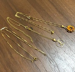 初めてご来店いただいたお客様から、貴金属ジュエリーをおまとめでお買い取りさせていただきました。今年は金相場がとても高騰していて、当店でもよくご売却いただいております。