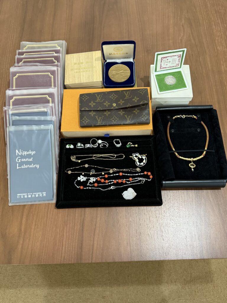 先日、沢山のかばんをお持ち込みいただいたお客様が、貴金属やお財布や記念メダルなどをお持ち込みくださいました。点数が多かった為、預かり査定とさせていただきしっかりと品位を確認し査定額を出させていただきました。前回同様ご納得いただき買取りの運びとなりました。