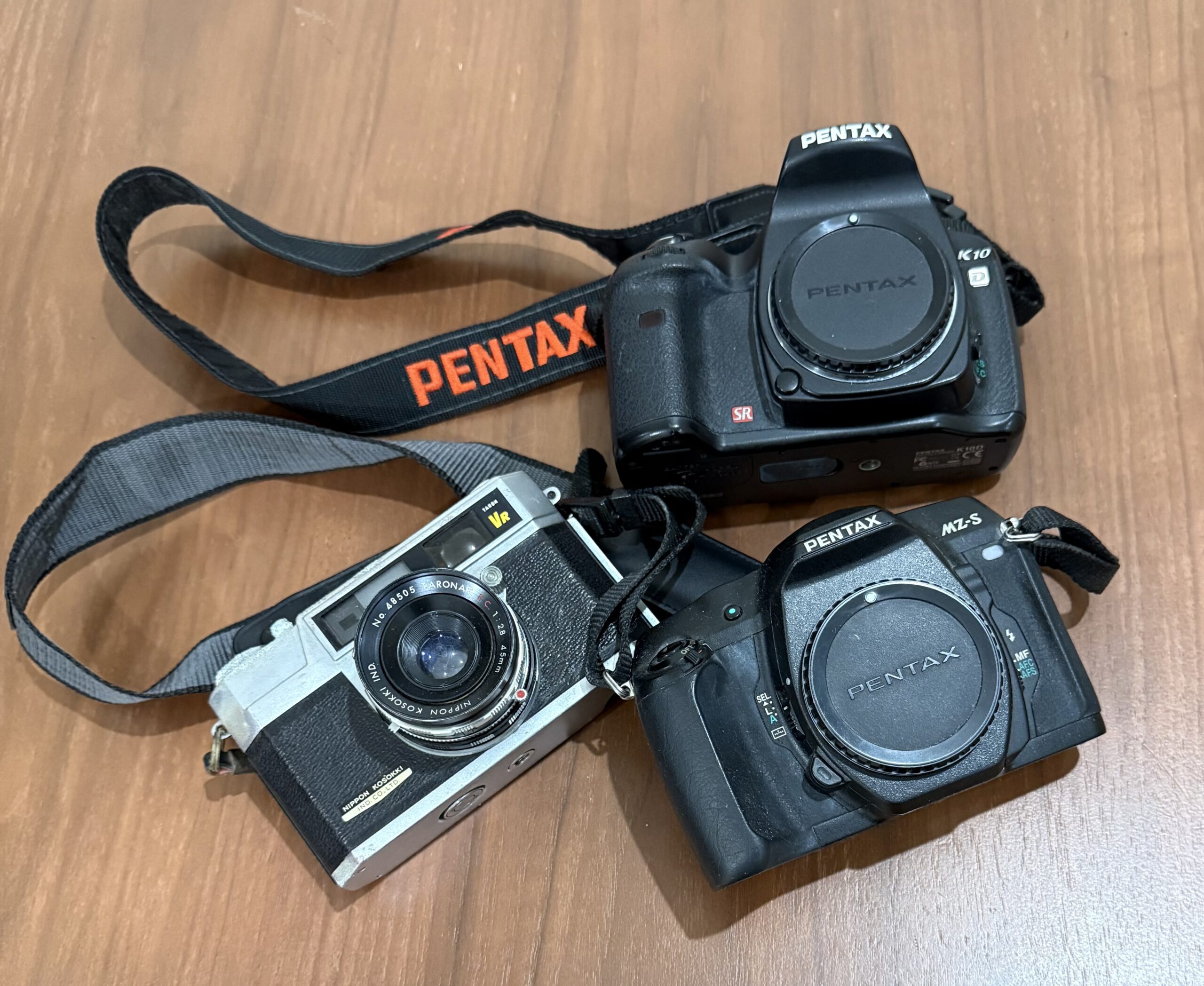 当店では、ヤシカ(Yashica)、ペンタックス(PENTAX)、ローライ(RolleiGmbH)製の手巻きカメラを高く評価させていただいています。最新機種では、ニコン(NIKON)、キャノン(CANON)、富士フィルムが定番です。