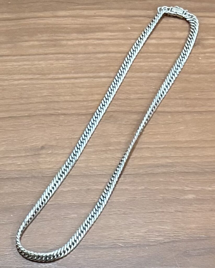 初めてご来店いただいたお客様からPt850のボリューム感のあるネックレスをお買い取りさせていただきました。譲り受けられたお品物でしたが、あまりお気に召さなかったそうです。真贋し査定額をご提示しましたら、喜んでいただけました。ネックレスとしては好きな物ではなかったが良い物を譲り受けられた、と仰っていました。