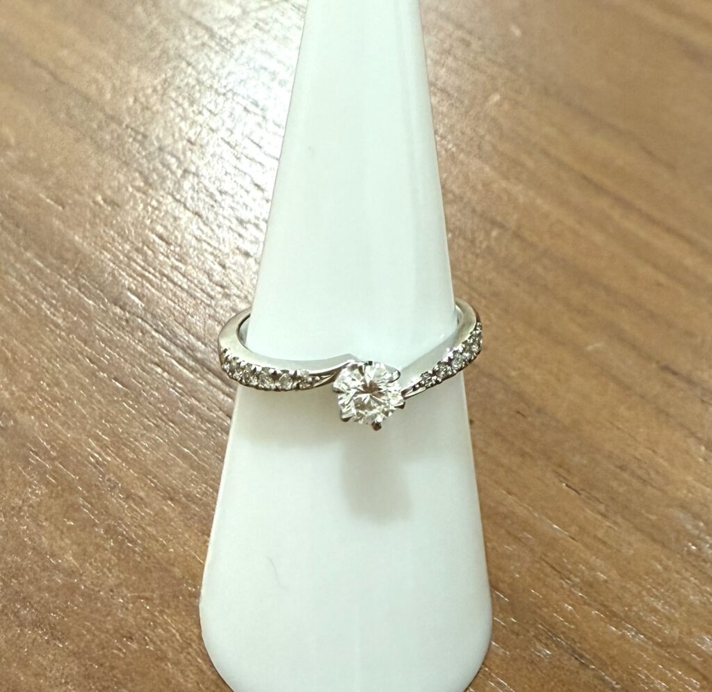 Pt950のダイヤモンドリングをお買い取りさせていただきました。メインダイヤモンド 0.3カラットの中央宝石研究所グリーティングレボートもお持ちいただきました。